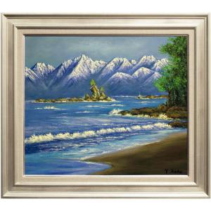 絵画 油絵 鳥海山 岡島哲夫 送料無料 海 山 肉筆 油絵 日本の風景 サムホール 商品詳細 掛け軸の販売 絵画の通販 掛軸堂 画廊 本店